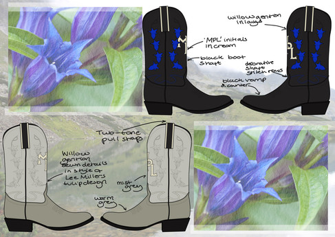Lee has previously made bespoke boots for his clients that feature inlays of their native flora and this sparked some ideas for me. I wanted my bespoke boots to not only tell my story but also to represent Poland's nature so I began by collating images that help to lay the foundation for the upcoming designs. A background moodboard takes a look into what I call 'home' and what I want to be representing in my boot designs.